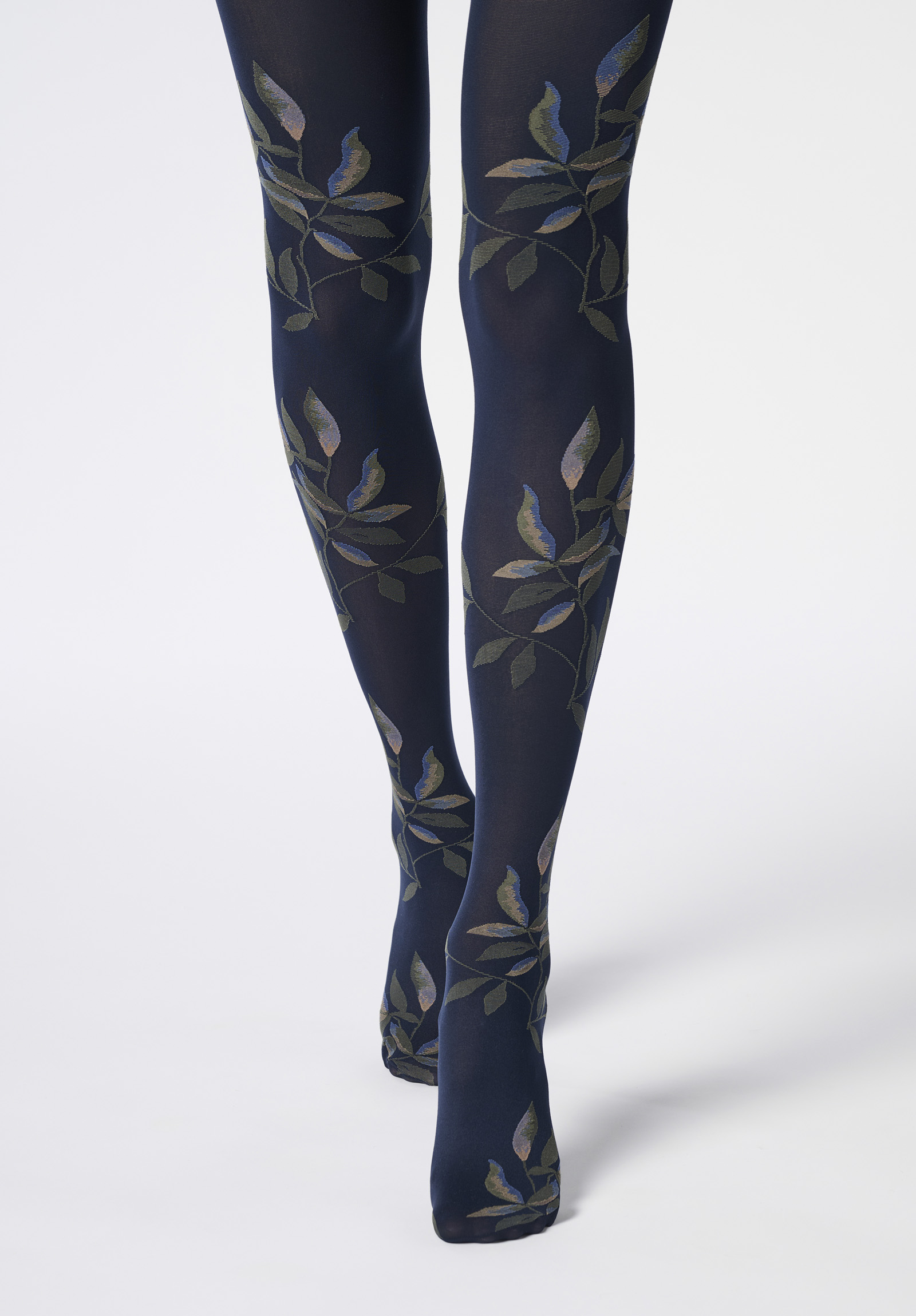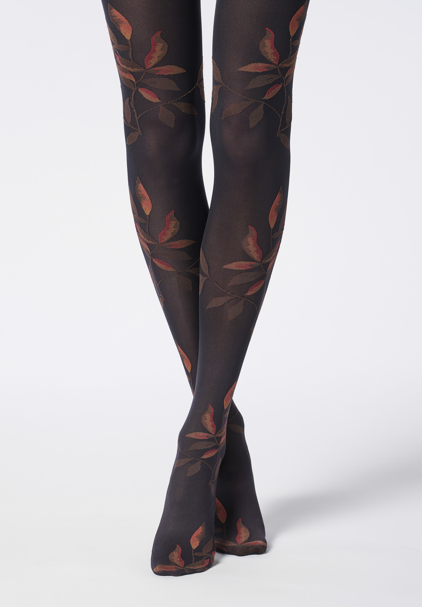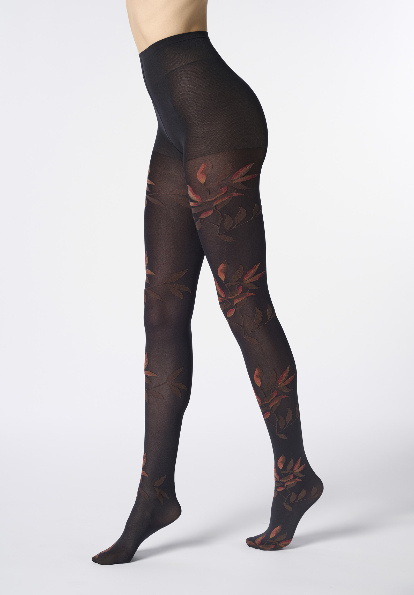 Blickdichte Strumpfhose mit zweifarbigem, floralem Muster in wunderschönen Herbstfarben.