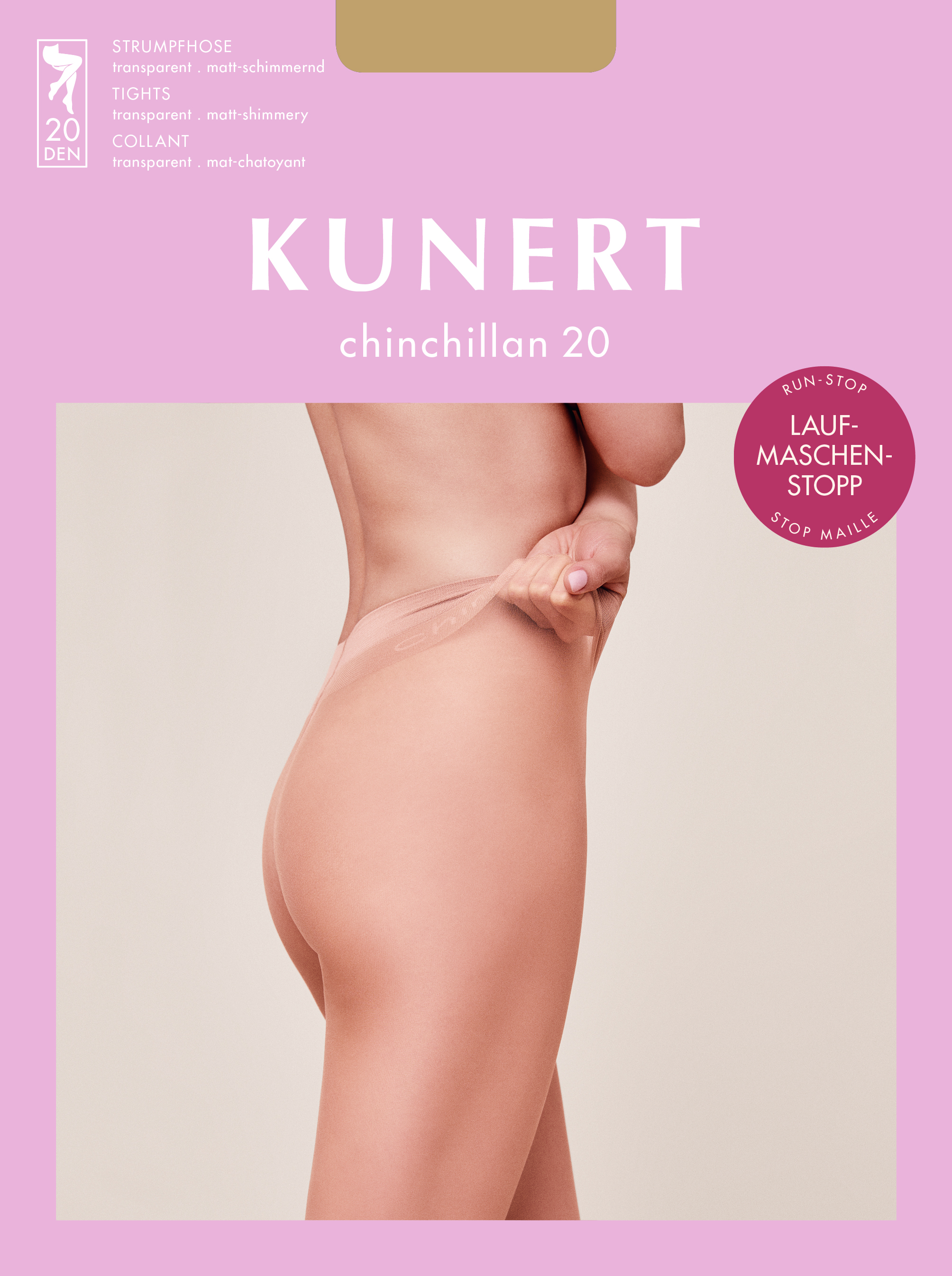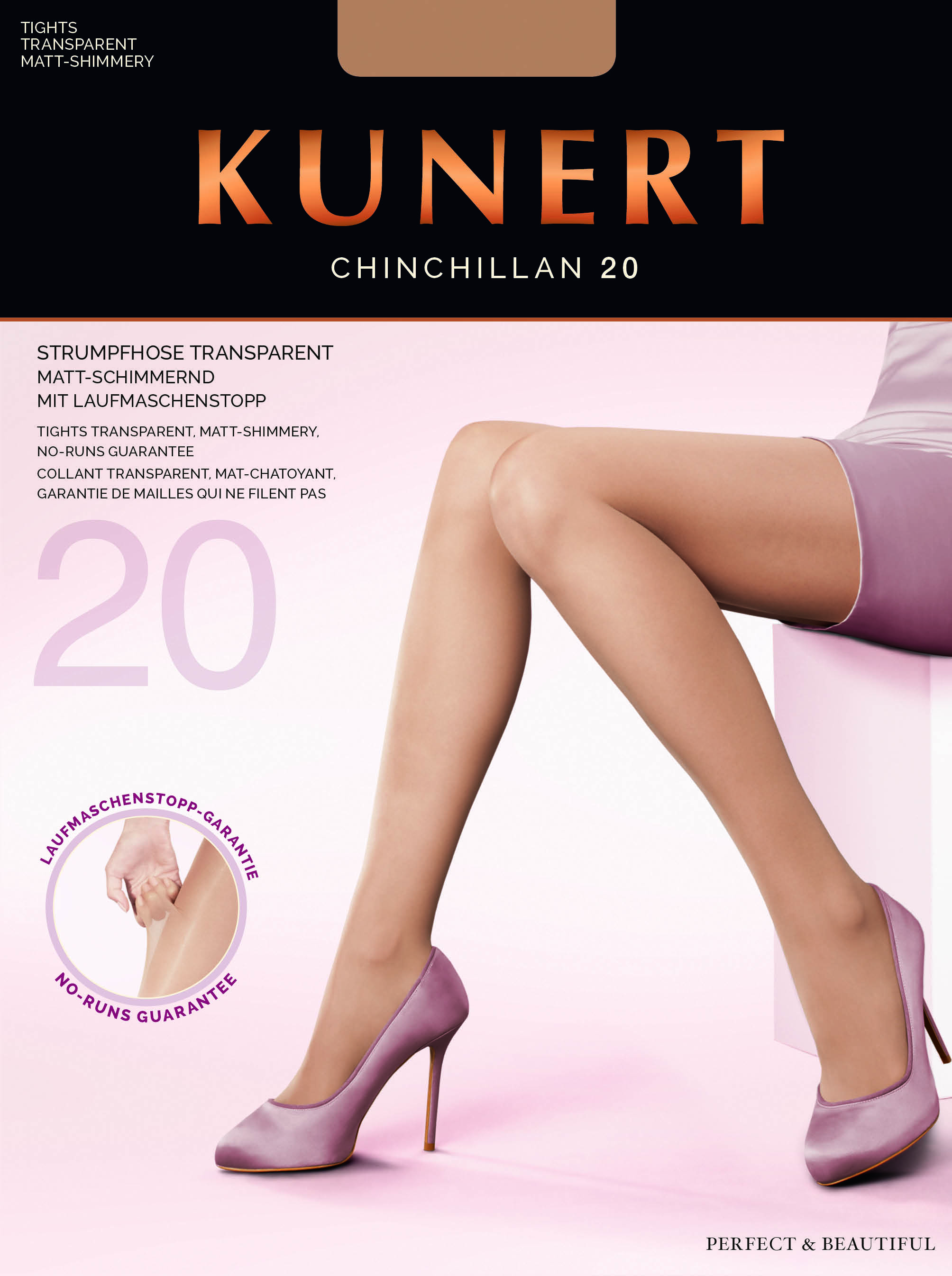 Matt-schimmernde transparente Strumpfhose: Eine innovative Materialkombination stoppt die Laufmaschen. Kunert Chinchillan ist besonders strapazierfähig und bietet ein seidig-weiches Gefühl mit der Sicherheit, dass es keine Laufmasche gibt.