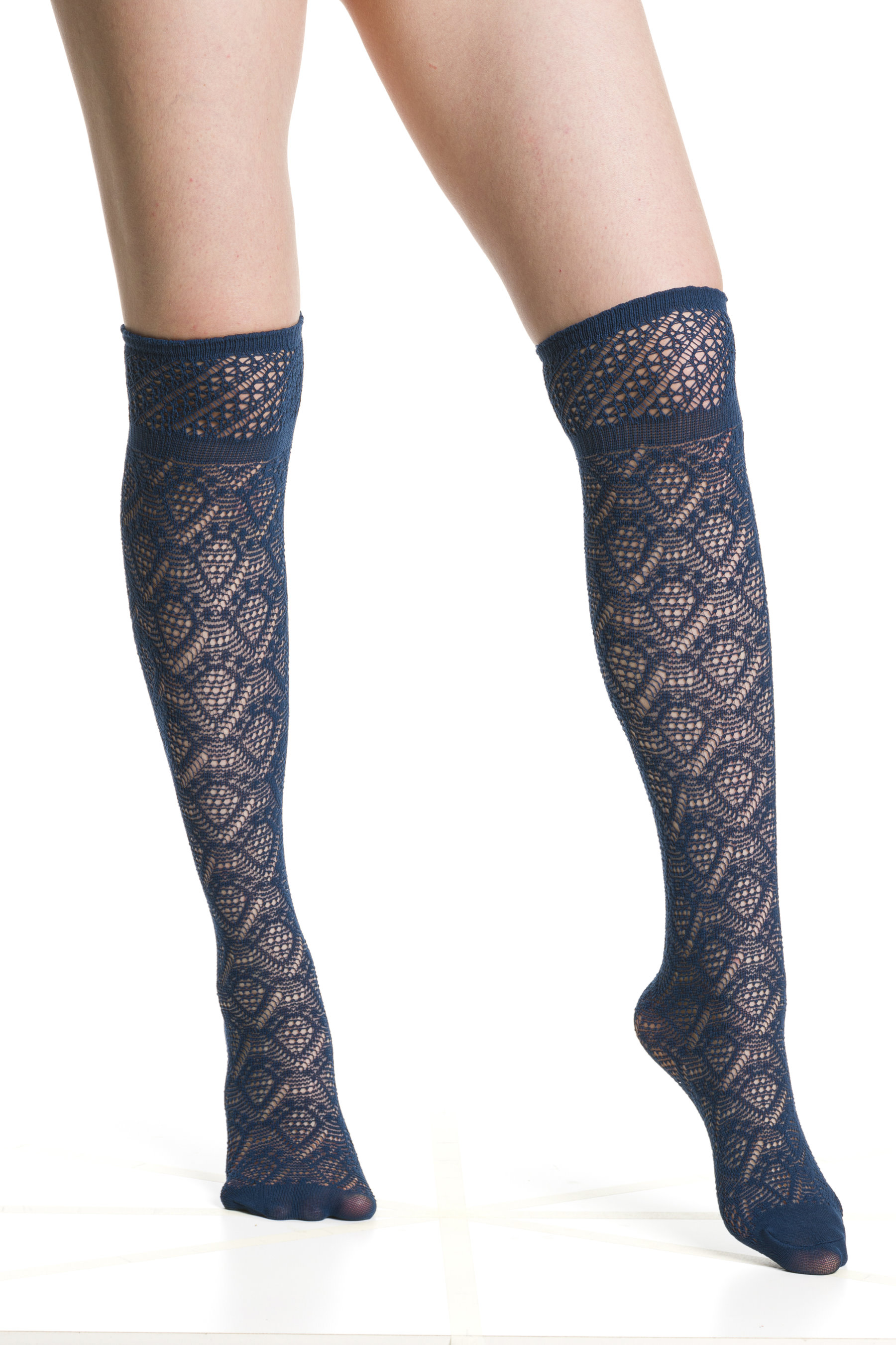 - Kniestrümpfe mit geometrischem Ajourmuster in Spitzenoptik, das aus vielen Basics ein modisches Outfit macht.