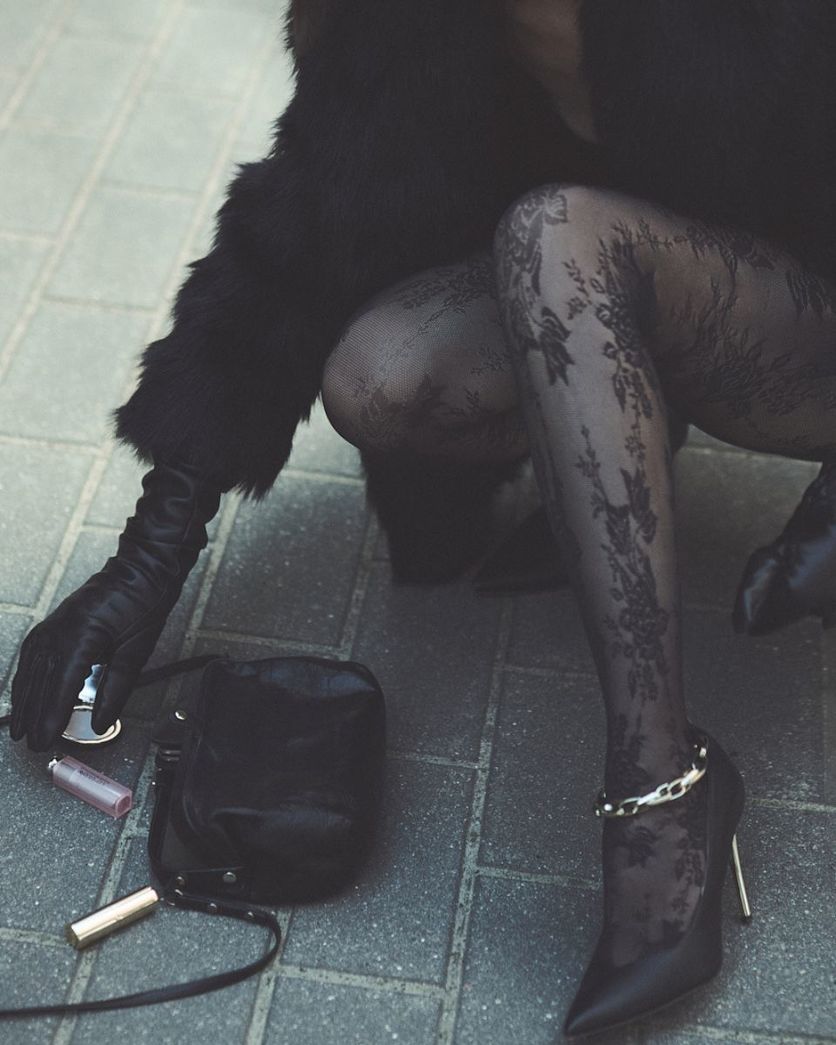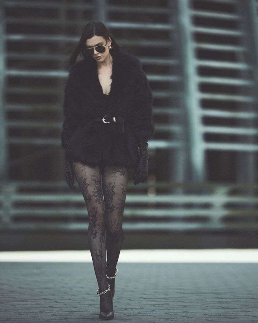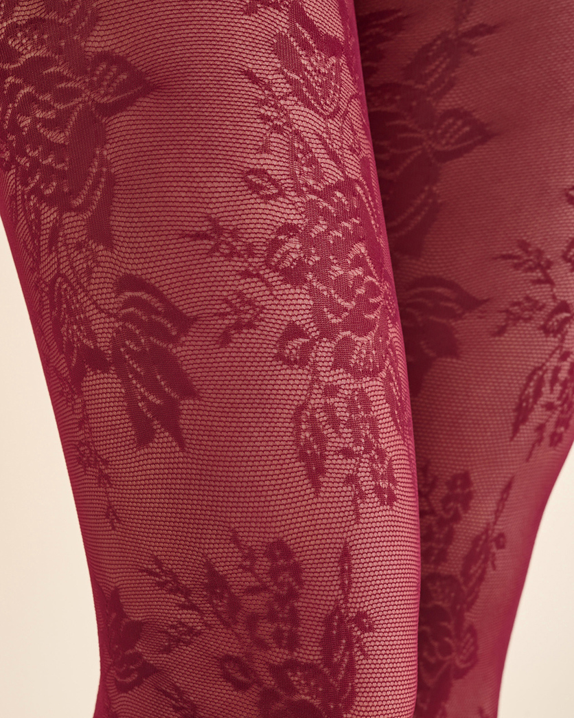 - Elegante Feinstrumpfhose mit floralem Spitzenmuster.