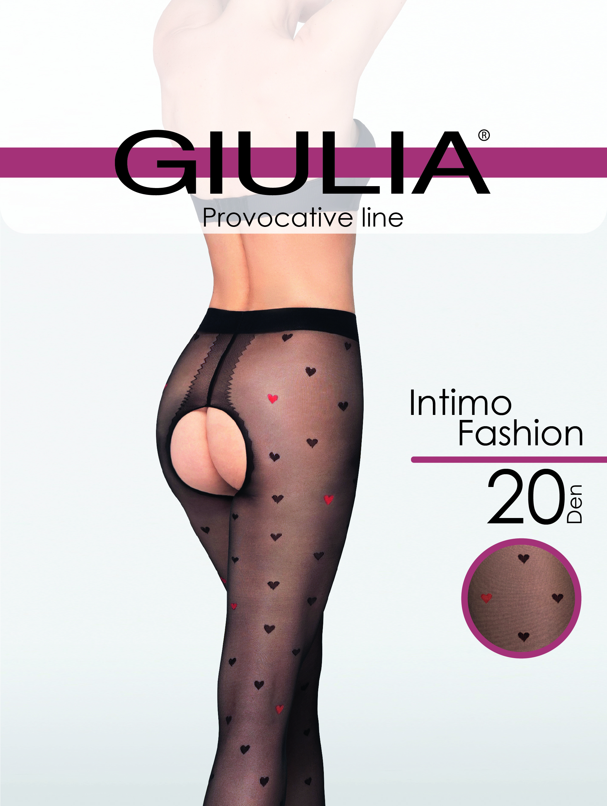 Strumpfhose von Giulia mit offenem Schrittbereich und bezaubernden, kleinen Herzchen, 20 den. Mit unsichtbar verstärkter Fußspitze.