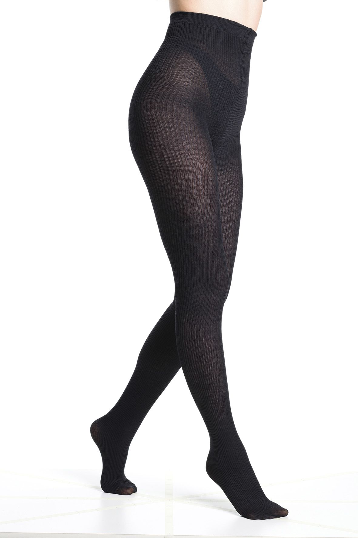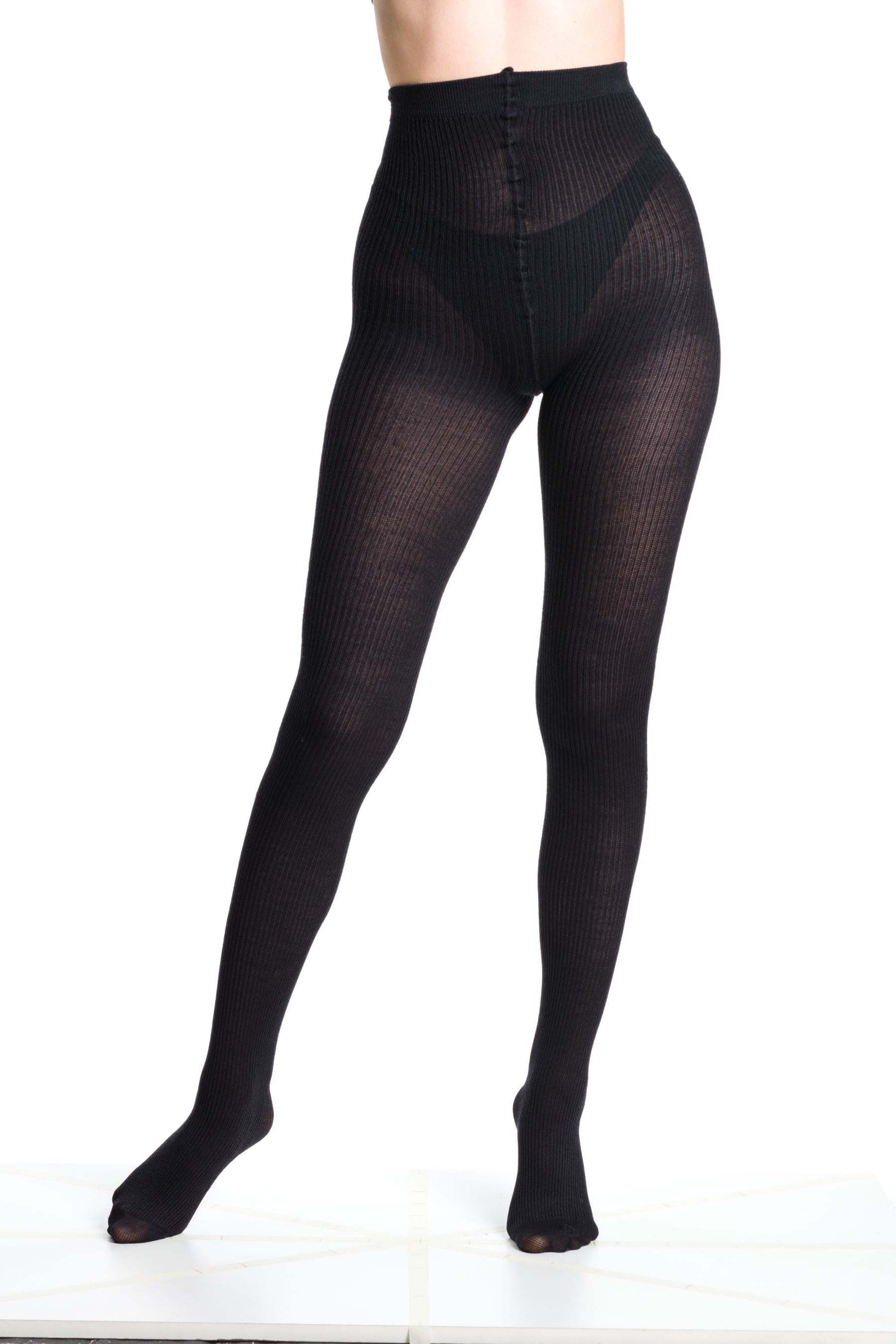 Collant in lana a costine, un motivo classico evergreen, morbido e caldo. Elastico confort, cucitura 4 aghi piatta, articolo stirato e punta invisibile.