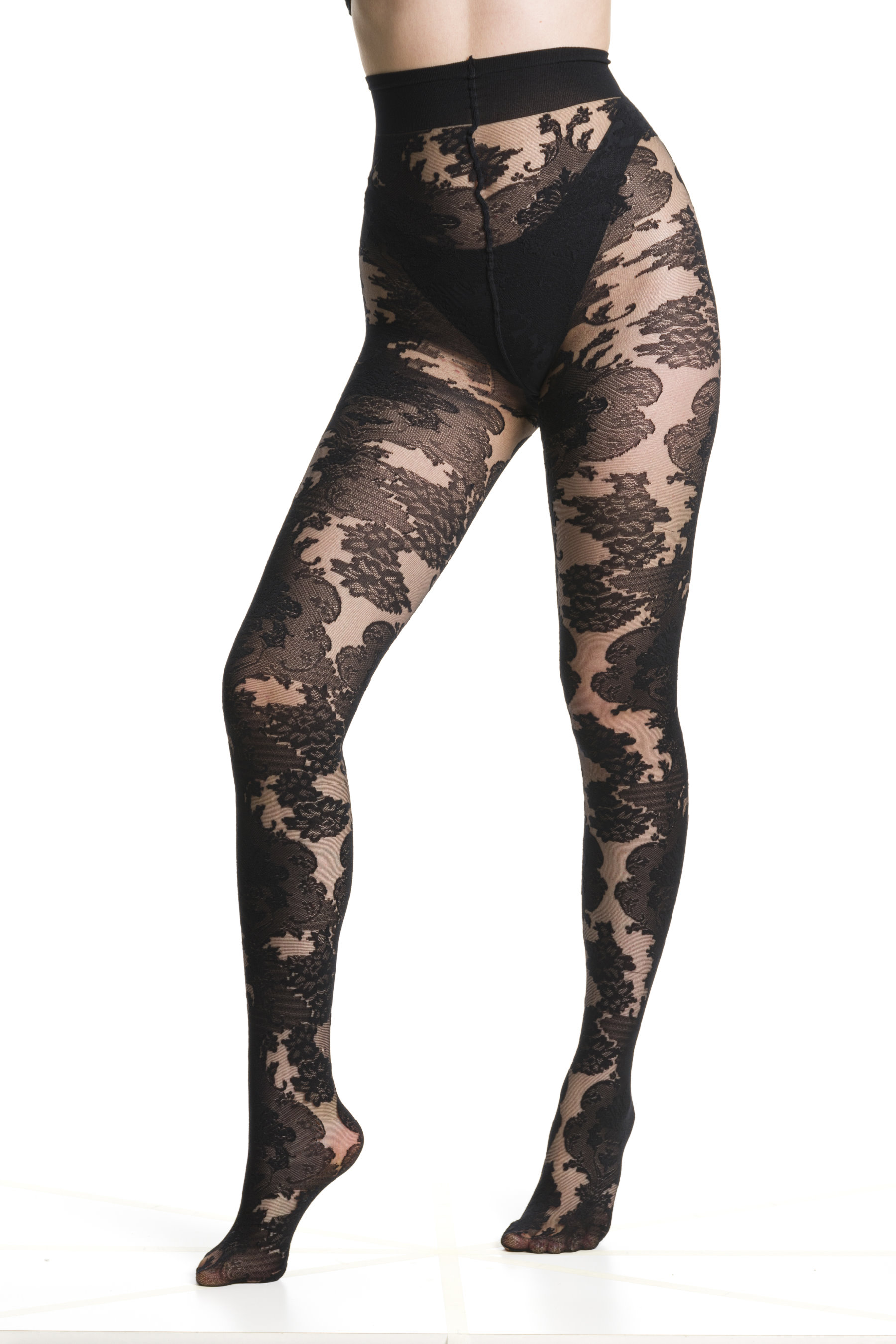 Semi-blickdichte Strumpfhose mit opulentem Damastmuster in wunderschöner Spitzenoptik, um Ihre Beine effektvoll zu inszenieren - aus der limitierten Kollektion vom Meister der Verführung - dem italienischen Hersteller Trasparenze!